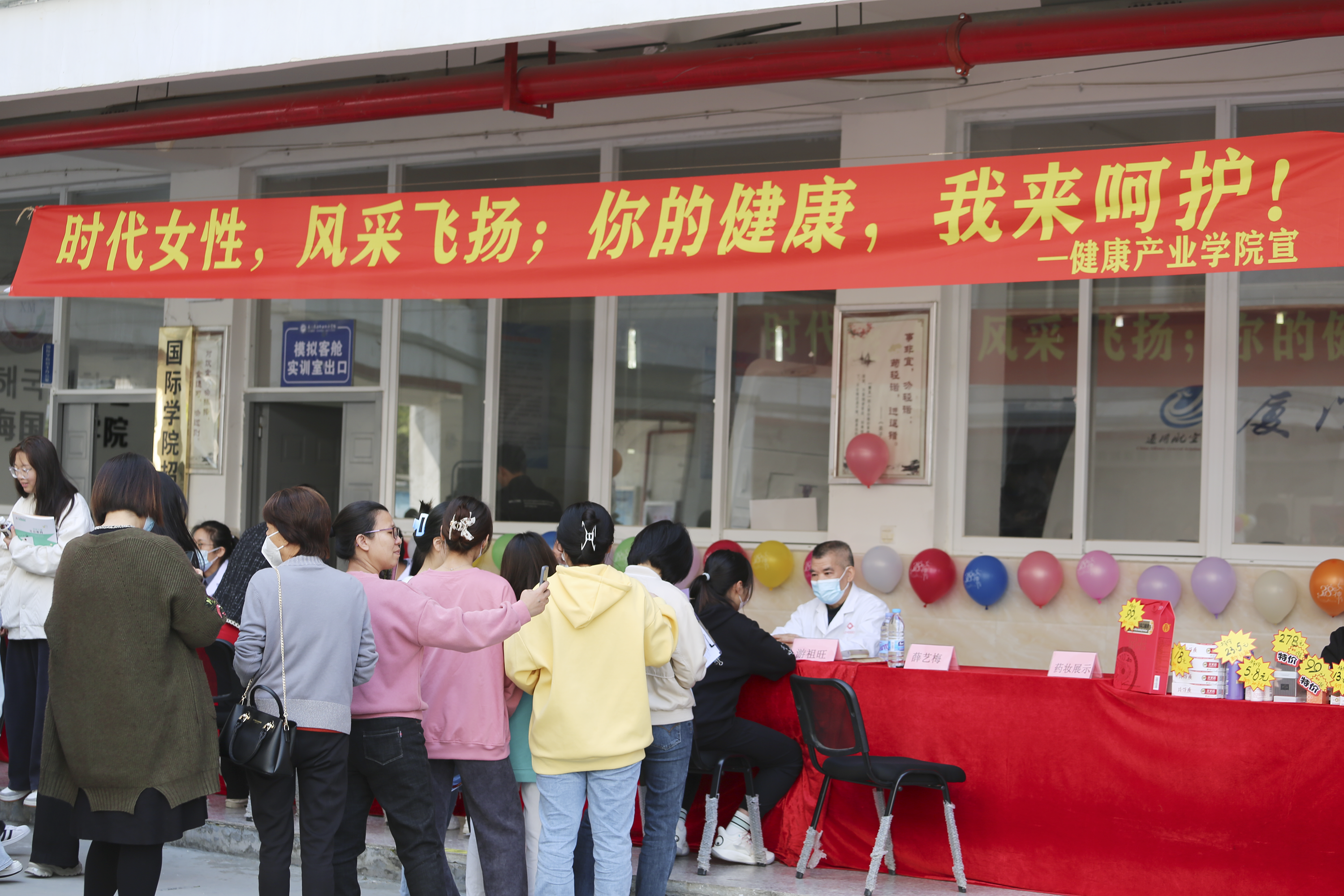 3月8日上午,必赢官网工会联合同安中医院、片仔癀健康公司专家医生与必赢官网健康产业学院师生,为必赢官网全体女同胞送上一场“关爱女性 健康同行”的现场义诊活动。